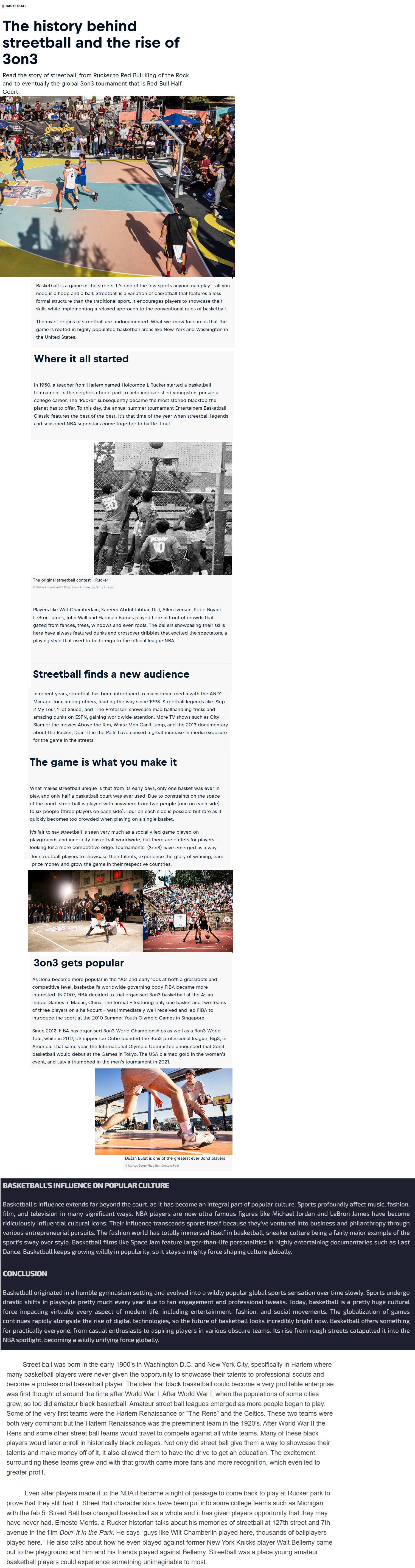 From its beginnings in the 70´s in the big cities of the US untill today the rules haven´t changed much but it´s got more and more influence within the street cultures around the world. Having its roots in the famous Rucker Park in New York City, streetball stepped up to other courts and cities where it was not enough for the boys to play on the team in their highschool.